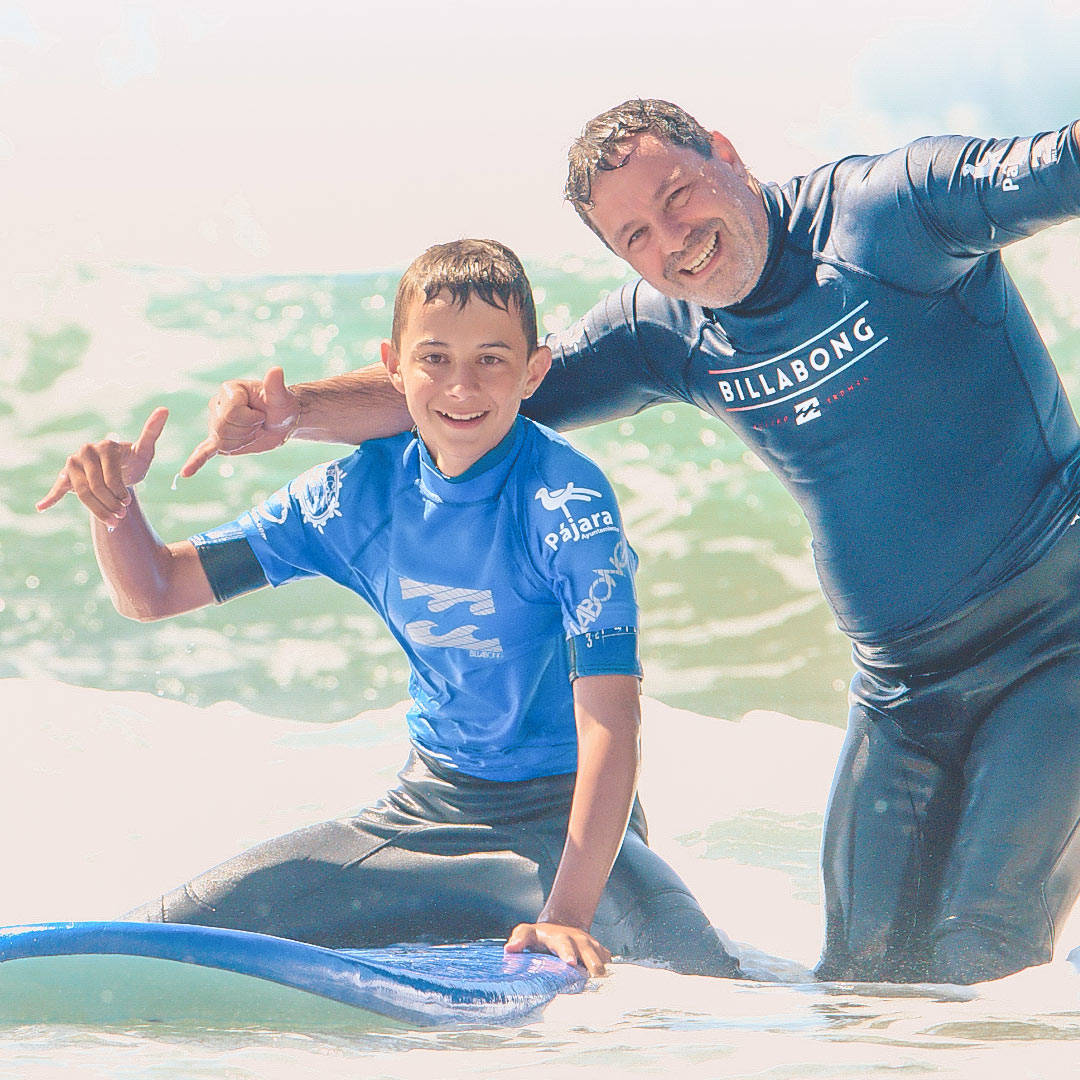 Pendant les vacances scolaires, nous proposons aussi des cours spéciaux pour enfants et des cours de surf en famille.