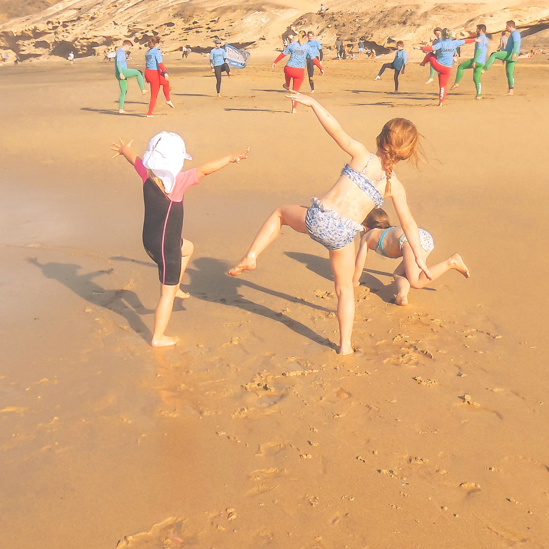 Chaque jour, nous nous rendons sur la plage qui offre les meilleures conditions de surf pour les familles avec enfants. Bien entendu, il ne s'agit que de plages avec du sable doux, peu de courant et de petites vagues.