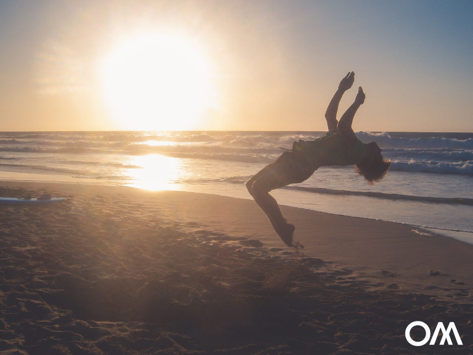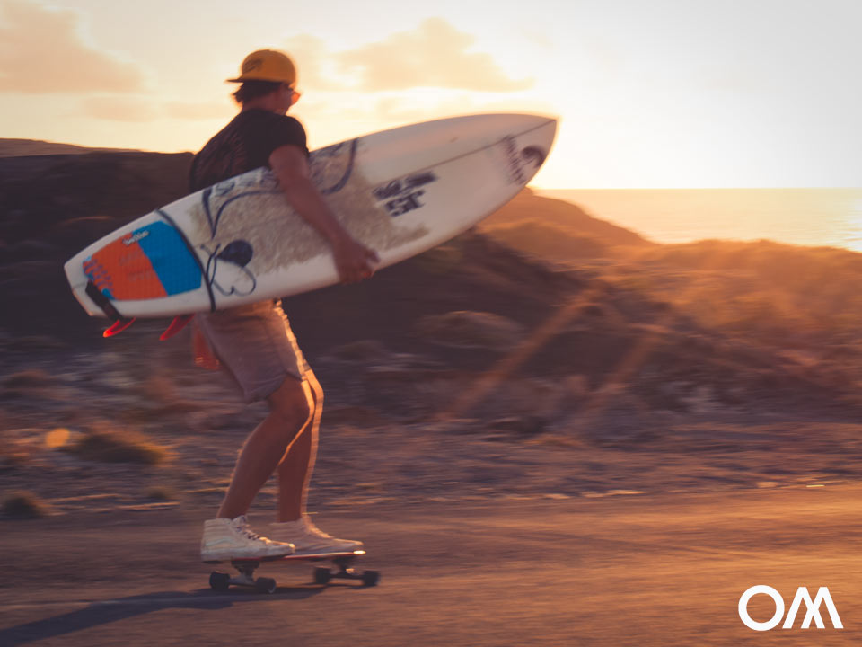 Comme la bahia est légèrement orientée vers le sud, tu peux non seulement y observer le coucher de soleil, mais aussi éviter un peu le vent. Dans la Bahia, le vent est toujours un peu moins orienté vers le large. En été, il y a des vagues dans la Bahia qui sont un peu plus protégées du vent.