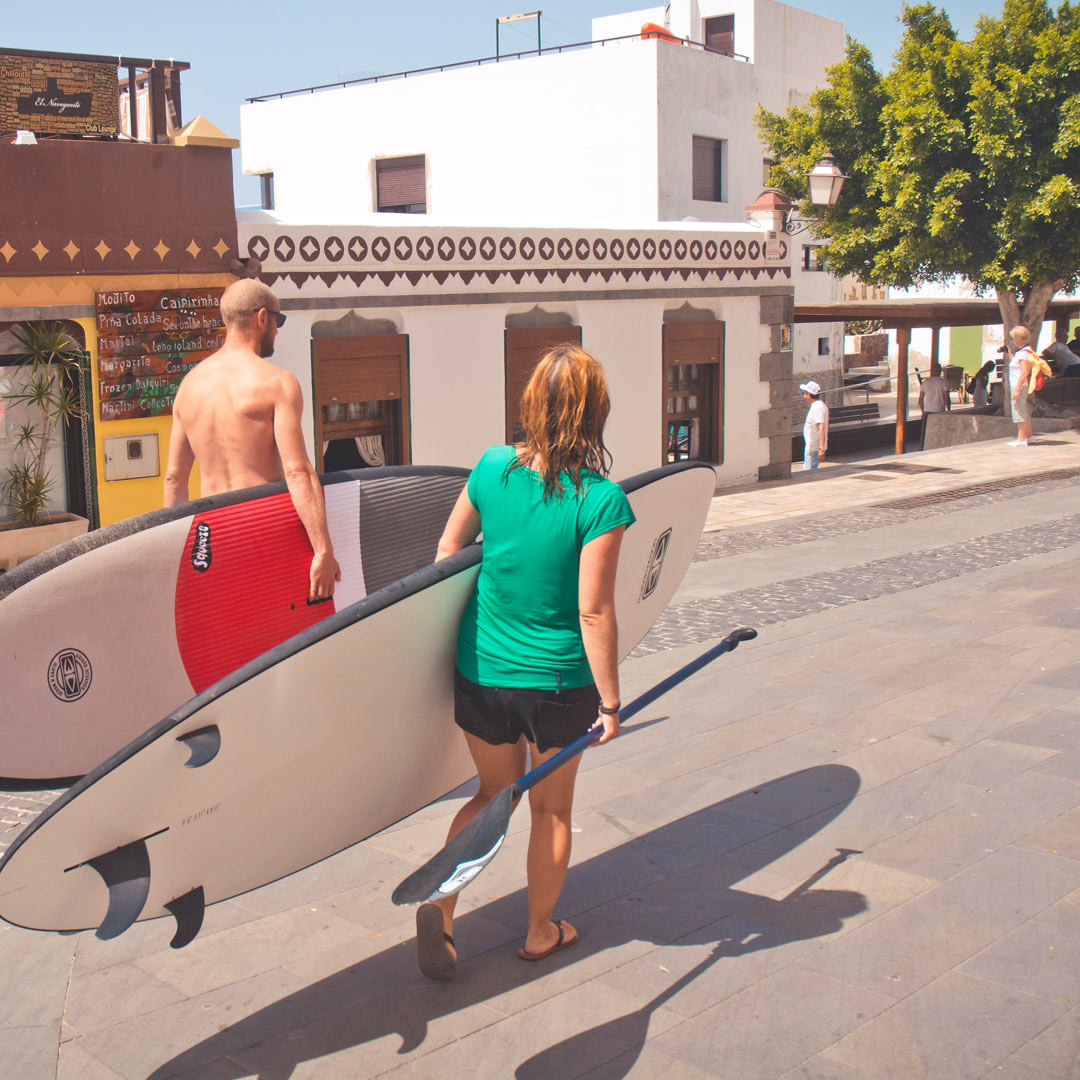 La ville voisine de Jandia est accessible en 15 minutes environ à pied par la promenade de la plage ou simplement en faisant un tour de SUP le long de la plage en direction du nord. Ici, de petites vagues propres se brisent souvent, idéales pour le surf en SUP.