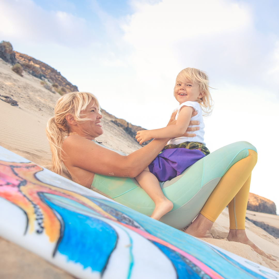 La deuxième option est spécialement conçue pour les surfeurs et les surfeuses qui élèvent seuls leurs enfants. Après tout, tu dois aussi avoir la possibilité de profiter pleinement de tes vacances de surf. Dans ce cas, nous nous chargeons de la garde des enfants sur la plage pendant que tu cours après les vagues dans l'eau.